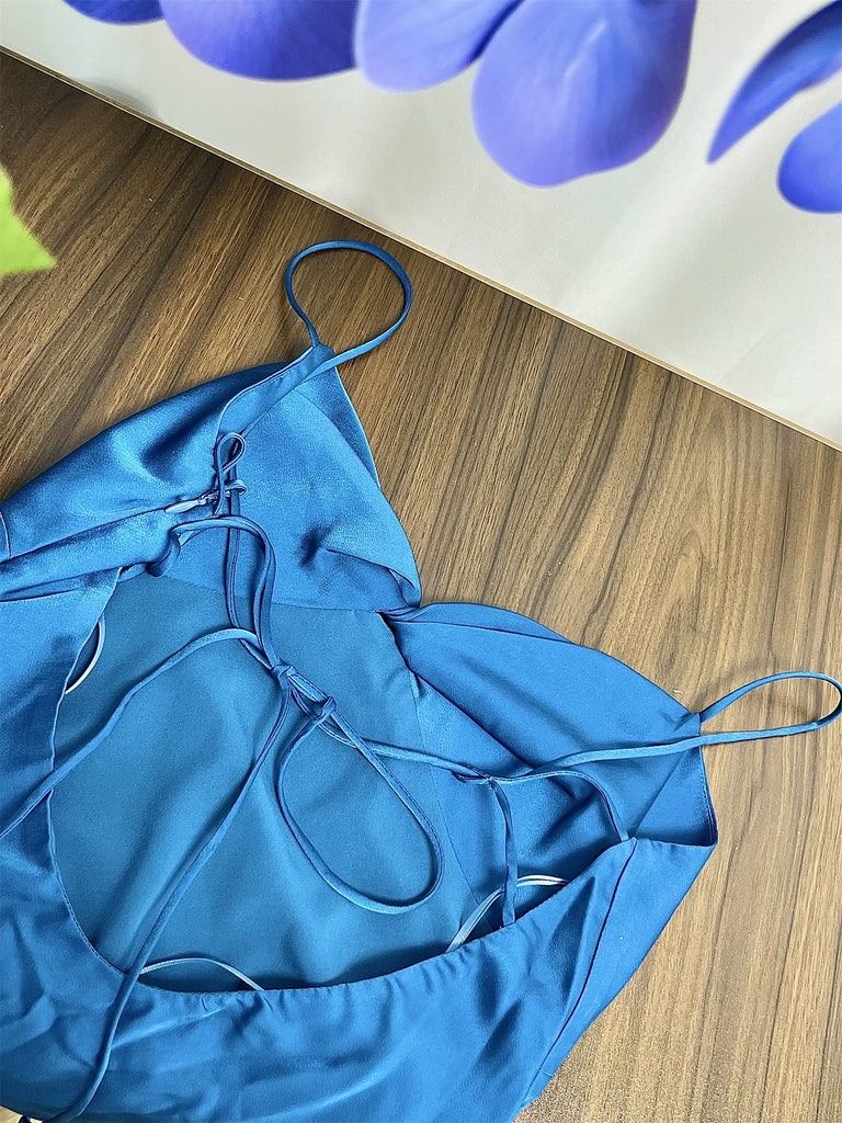 Blue Back Tie Rope Slip mini Dress - M is backordered and will ship as soon as it is back in stock.