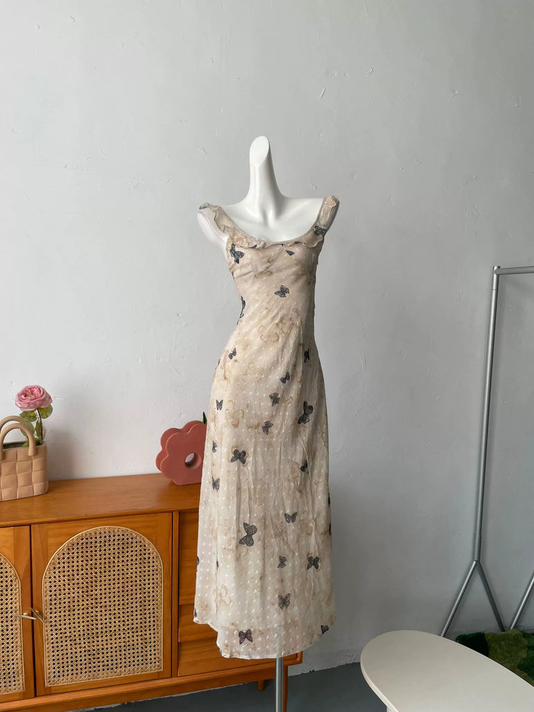 butterfly print camisole ruffled maxi dress - M / Light Brown is backordered and will ship as soon as it is back in stock.