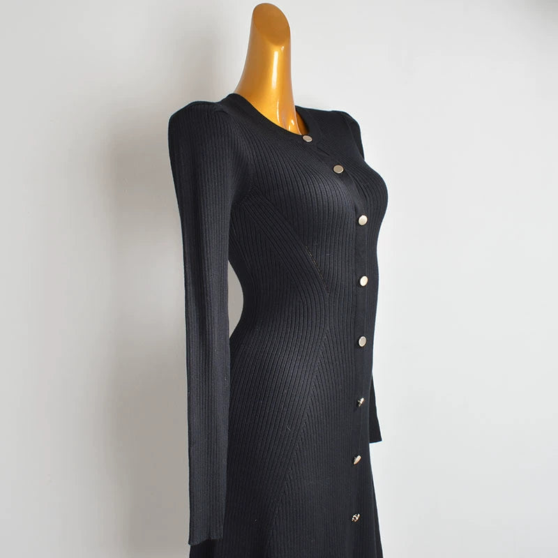 long-sleeved pullover knitted dress - XS / black is backordered and will ship as soon as it is back in stock.