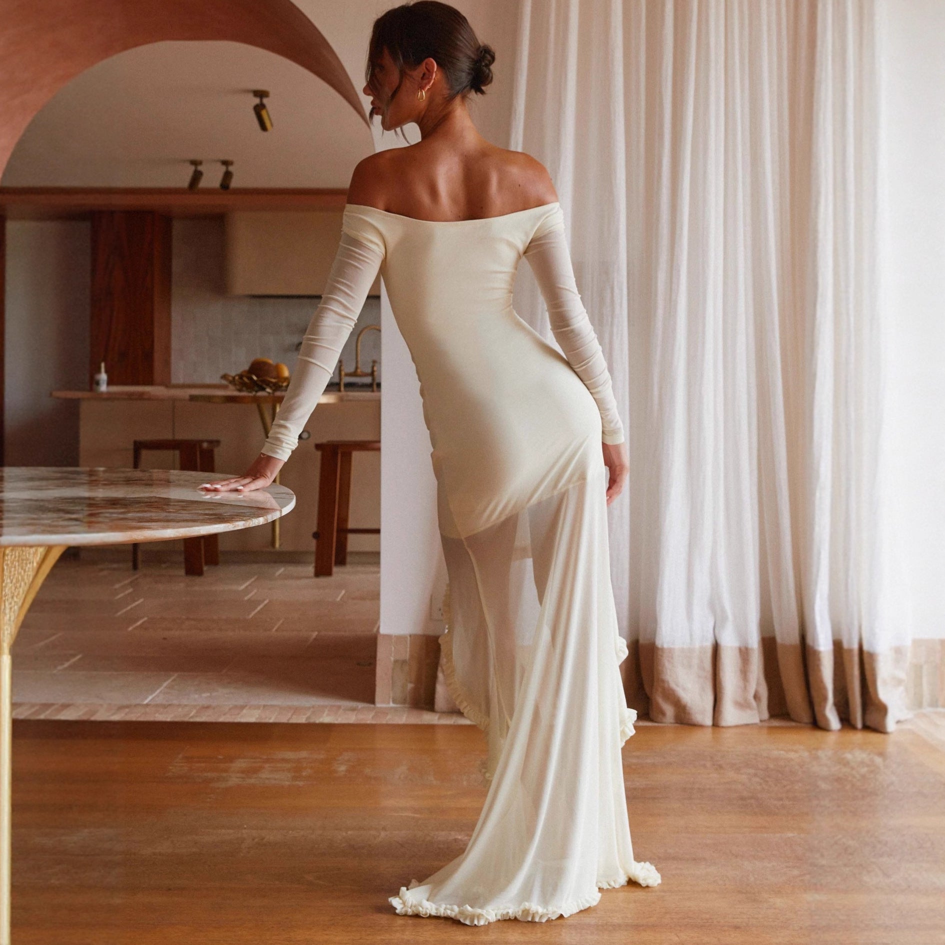 pleated splicing irregular one-shoulder dress – Bellepolly