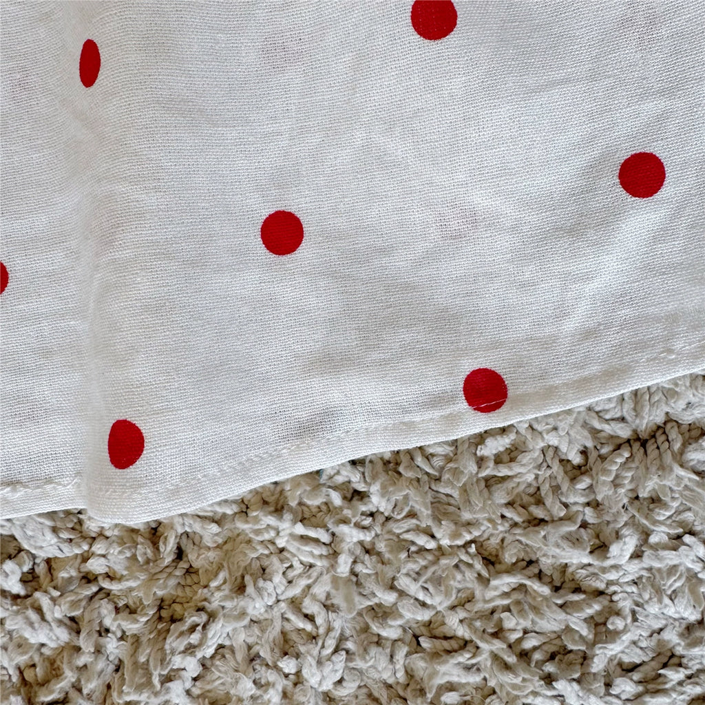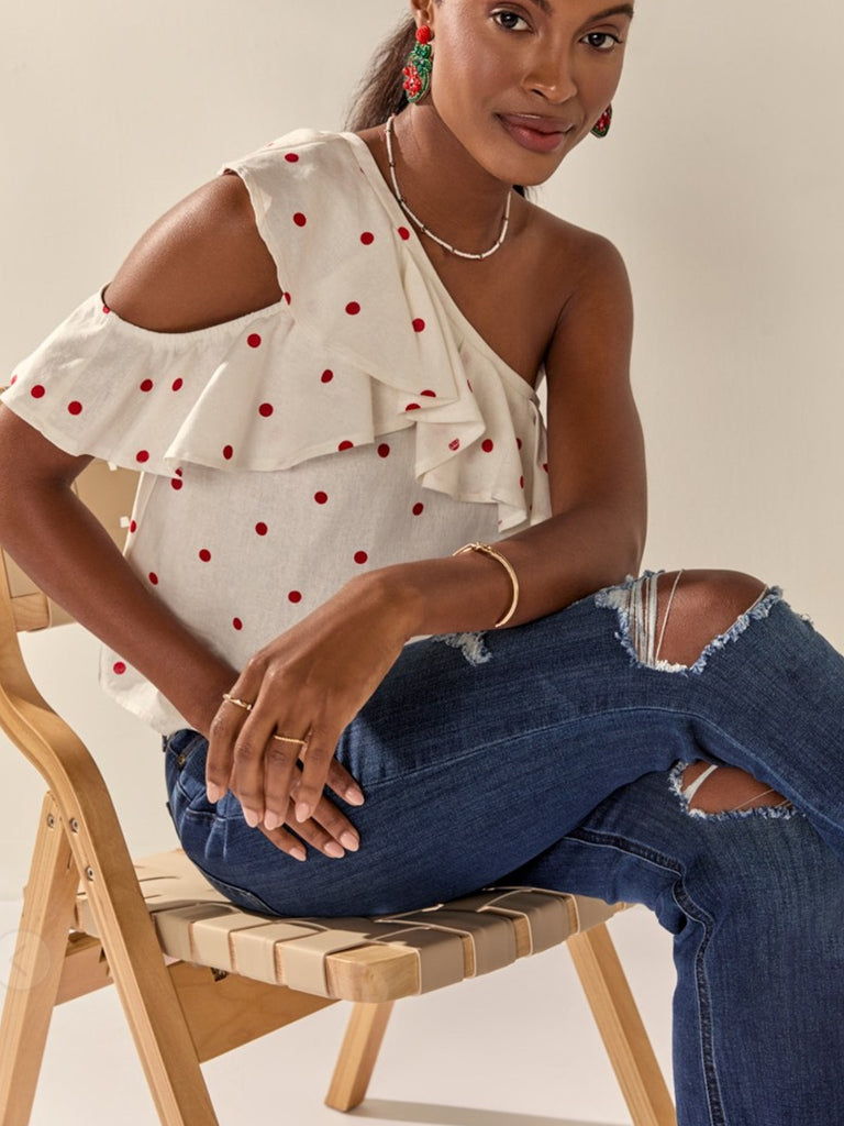 polka dot ruffle one-sided off-the-shoulder linen top – Bellepolly