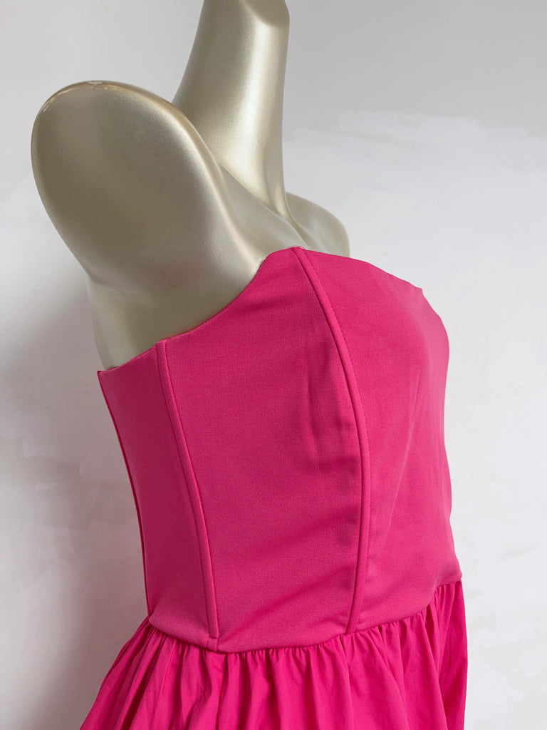 rose red fishbone shaping pinch pleats waist bandeau dress - M / Rose red is backordered and will ship as soon as it is back in stock.