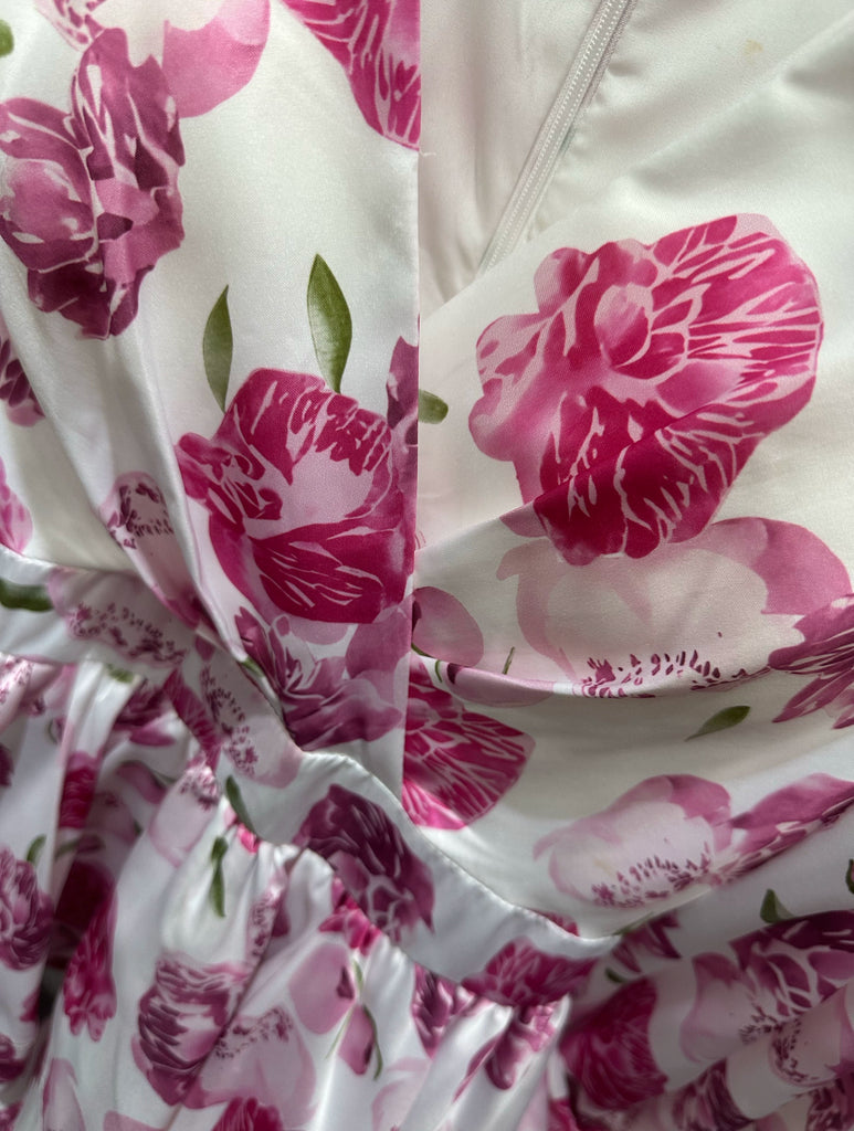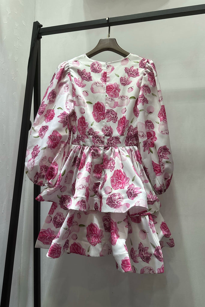 V-neck floral print double mini dress - M / Picture pink is backordered and will ship as soon as it is back in stock.