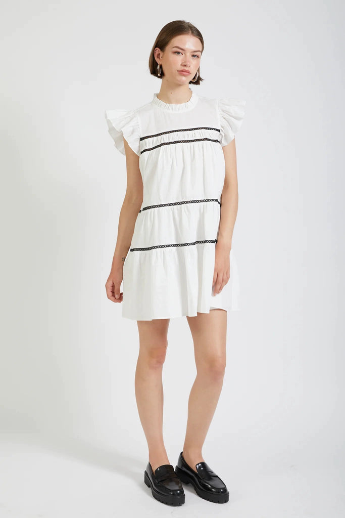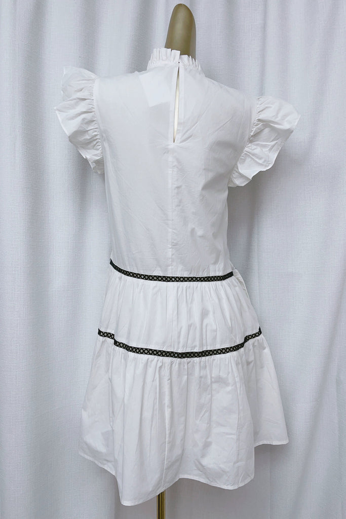white cut-out splicing pinch pleated ruffled dress - M / White is backordered and will ship as soon as it is back in stock.
