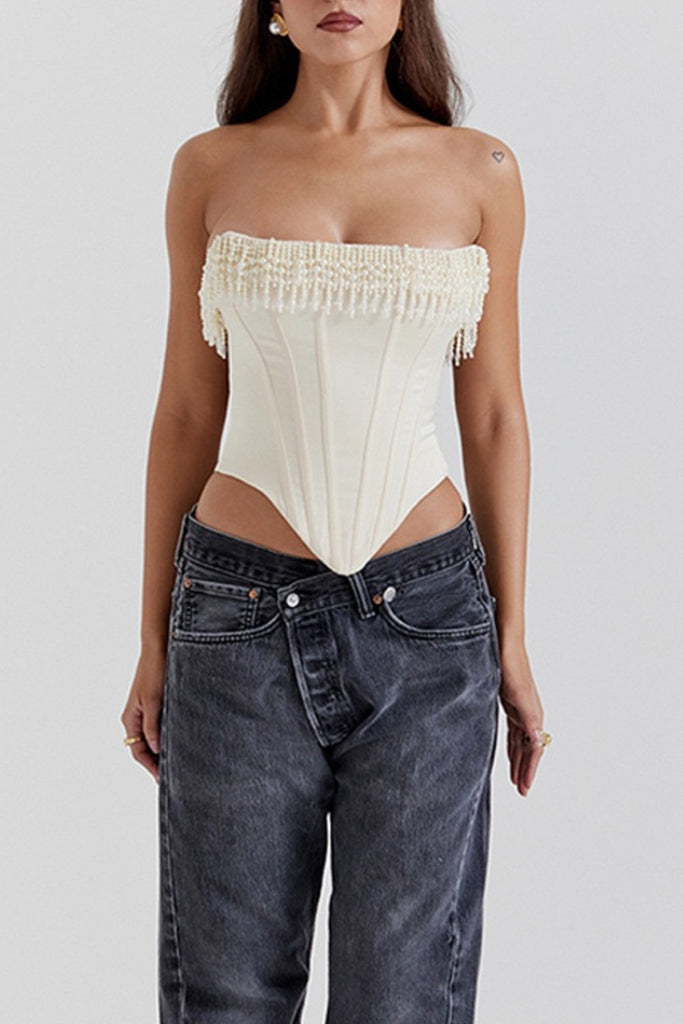 Nalini faux-pearl off-shoulder top