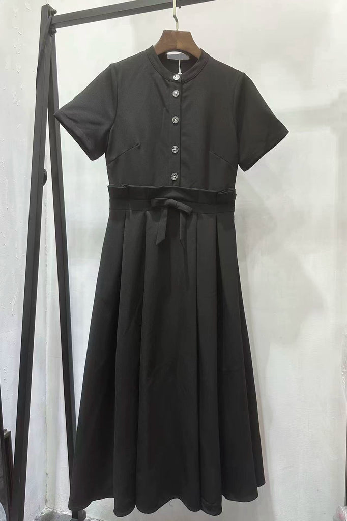 black waist slim short-sleeved dress