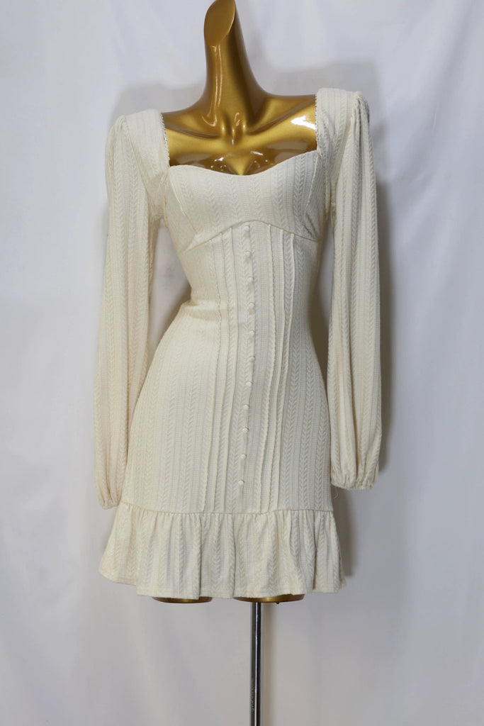 white long sleeve knitted mini dress
