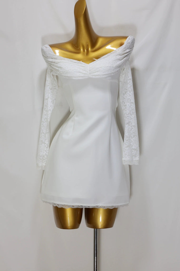 white long sleeve off shoulder min dress