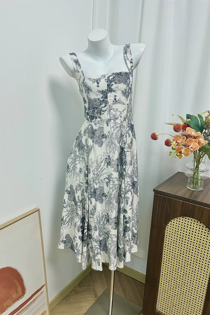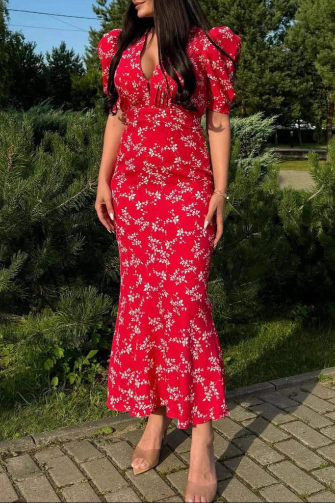 Blue Ocean V-Neck Ruffle Suspender Side Slit Dress
