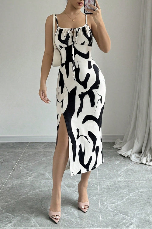 cow lace-up backless slit suspender dress