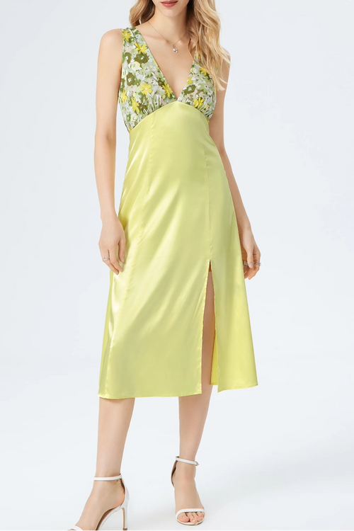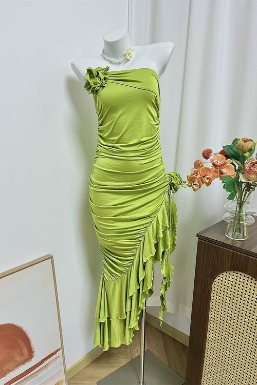 green Cutout Knot Slit V-Neck Sleeveless Pleated Irregular Dress