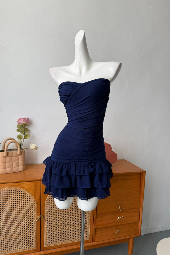 Black Swirl Print Draped Chiffon Bandeau Bodycon mini Dress