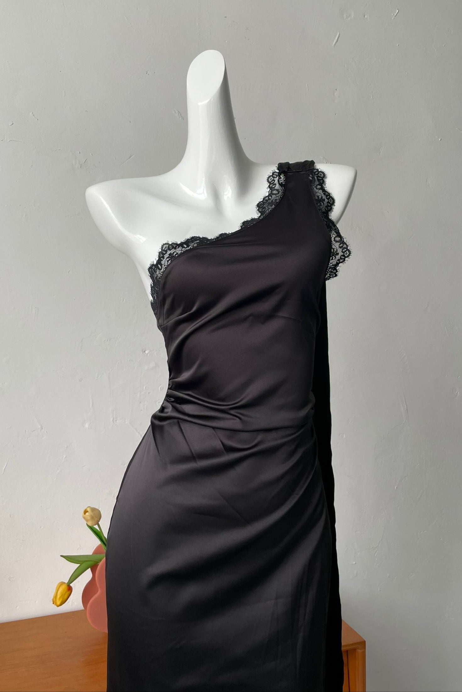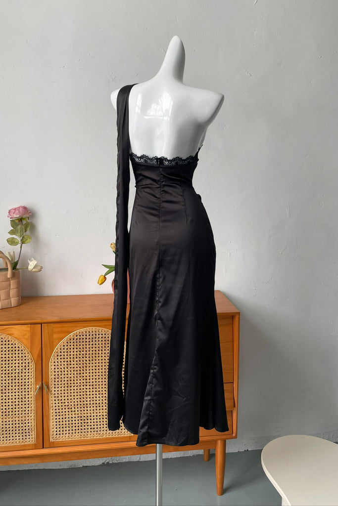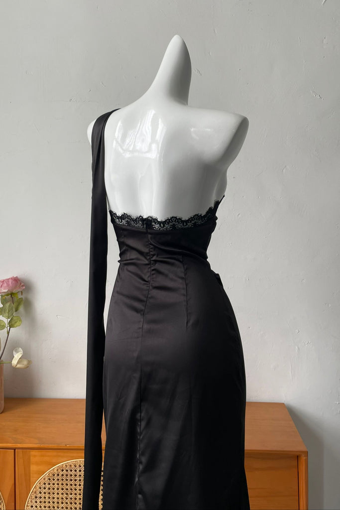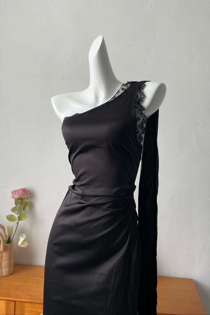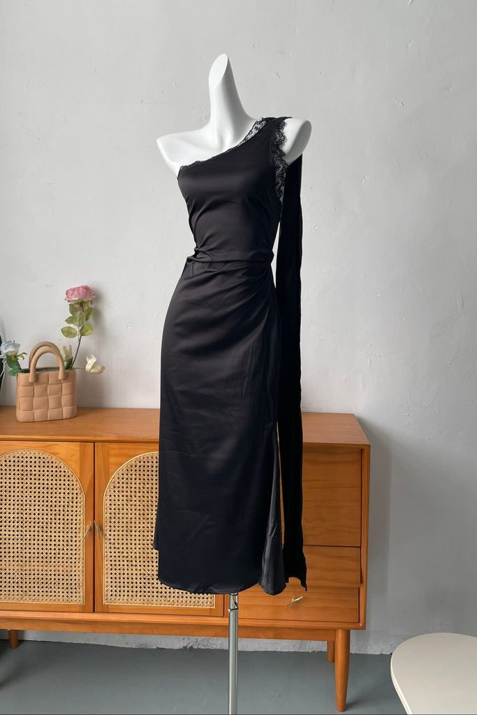 slanted shoulder long sleeve dress - XXS / black is backordered and will ship as soon as it is back in stock.
