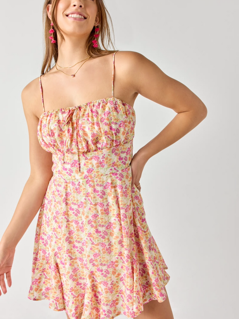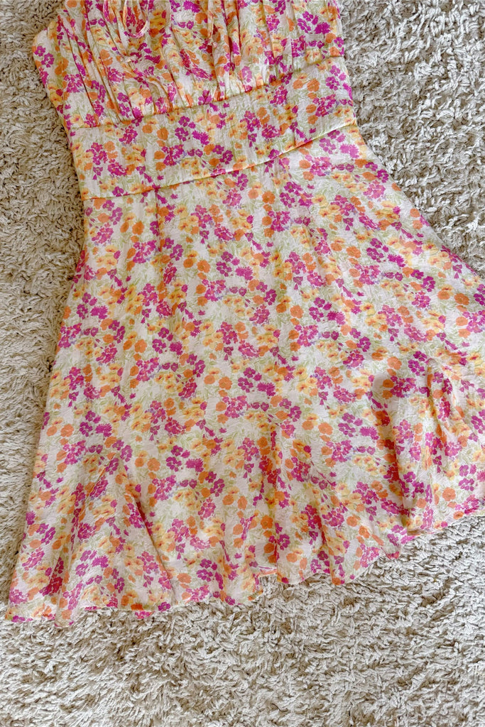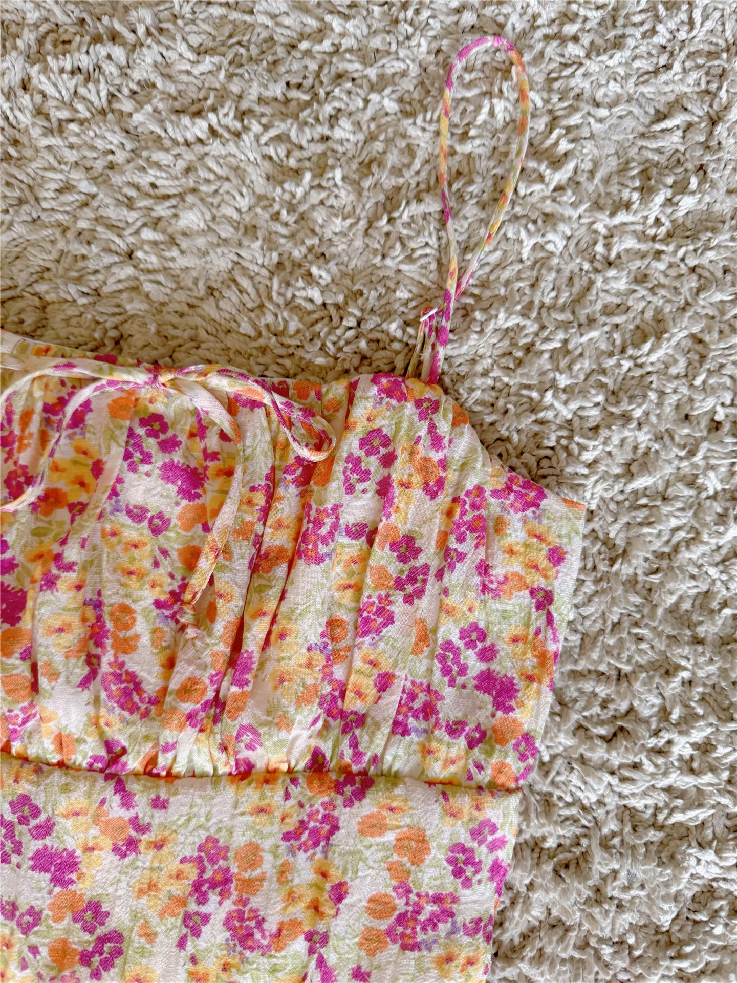 floral bow lace-up pleated camisole dress - M is backordered and will ship as soon as it is back in stock.