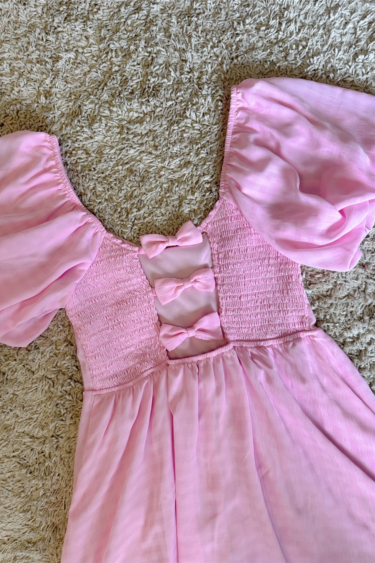 pink backless bow puff sleeve waist mini dress