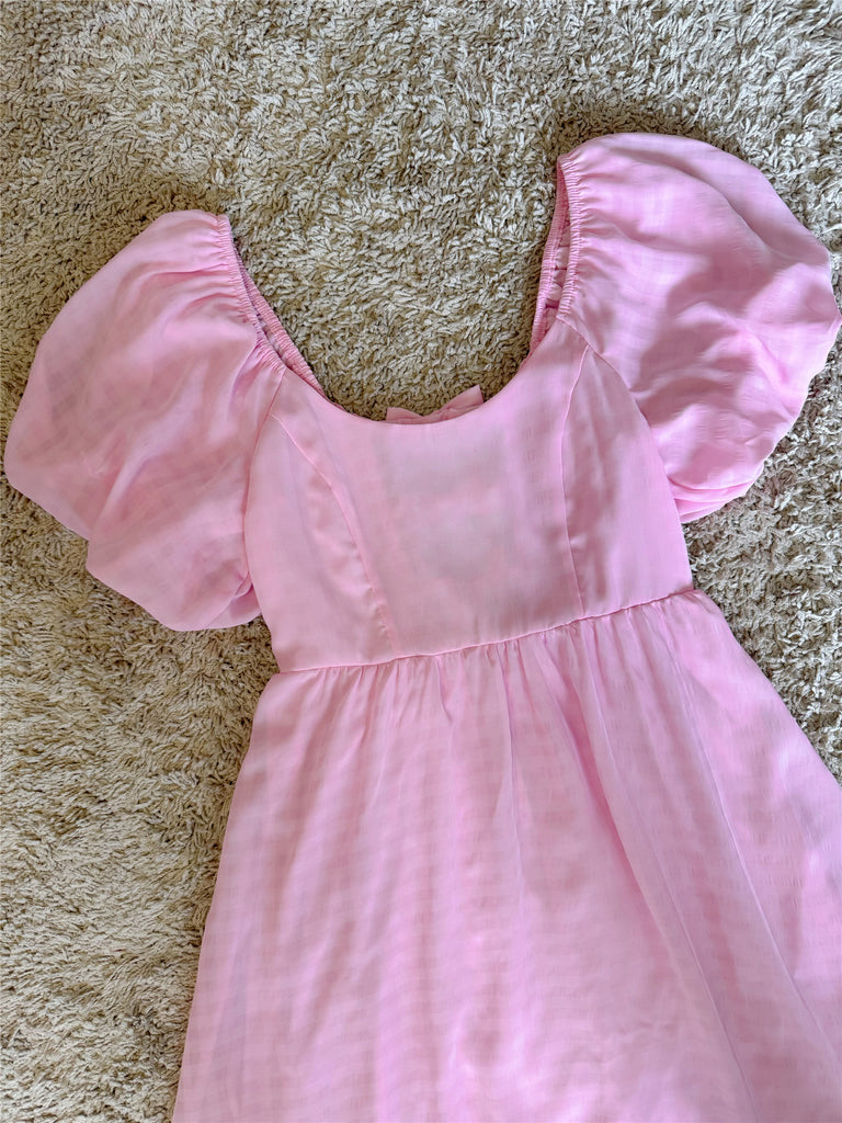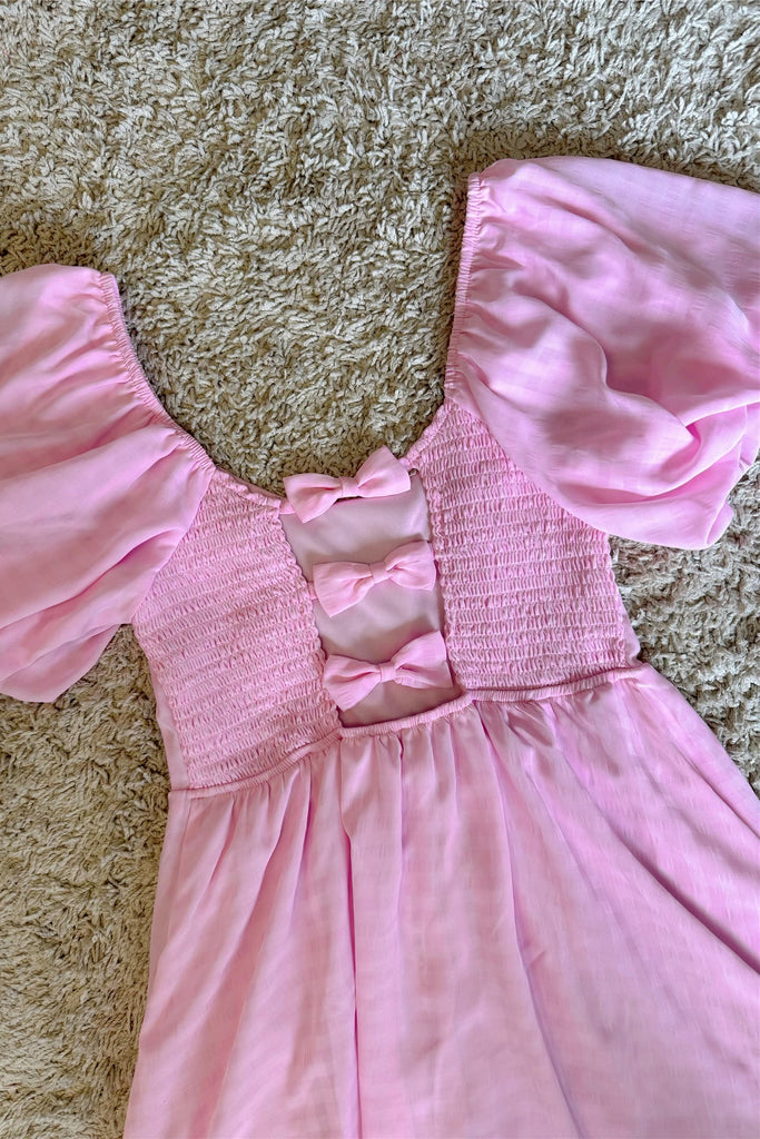 pink backless bow puff sleeve waist mini dress – Bellepolly