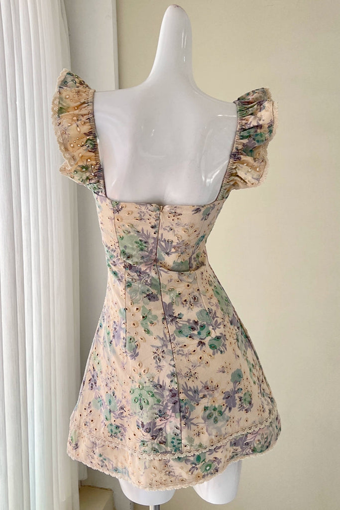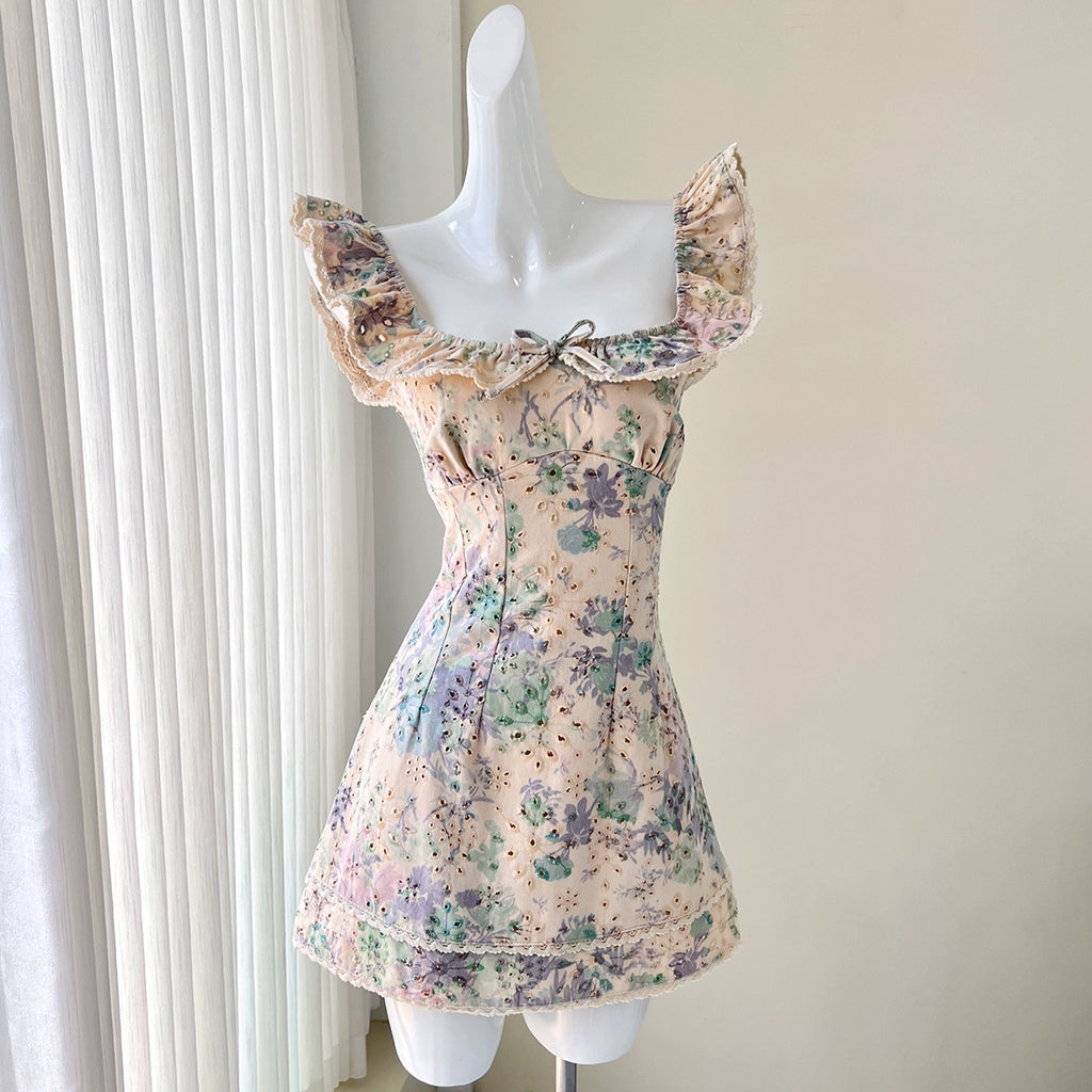 print flying sleeves cutout bow dress - XS is backordered and will ship as soon as it is back in stock.