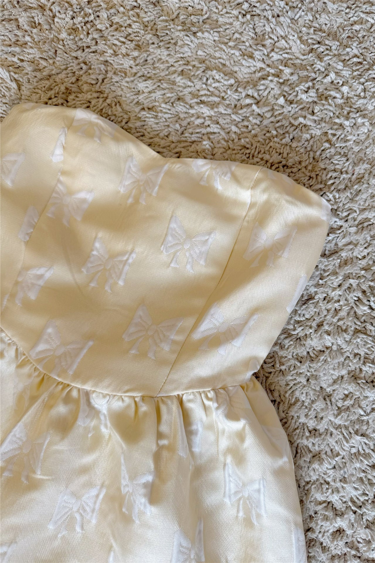 vintage embossed bow glossy bandeau puffy mini dress - L is backordered and will ship as soon as it is back in stock.