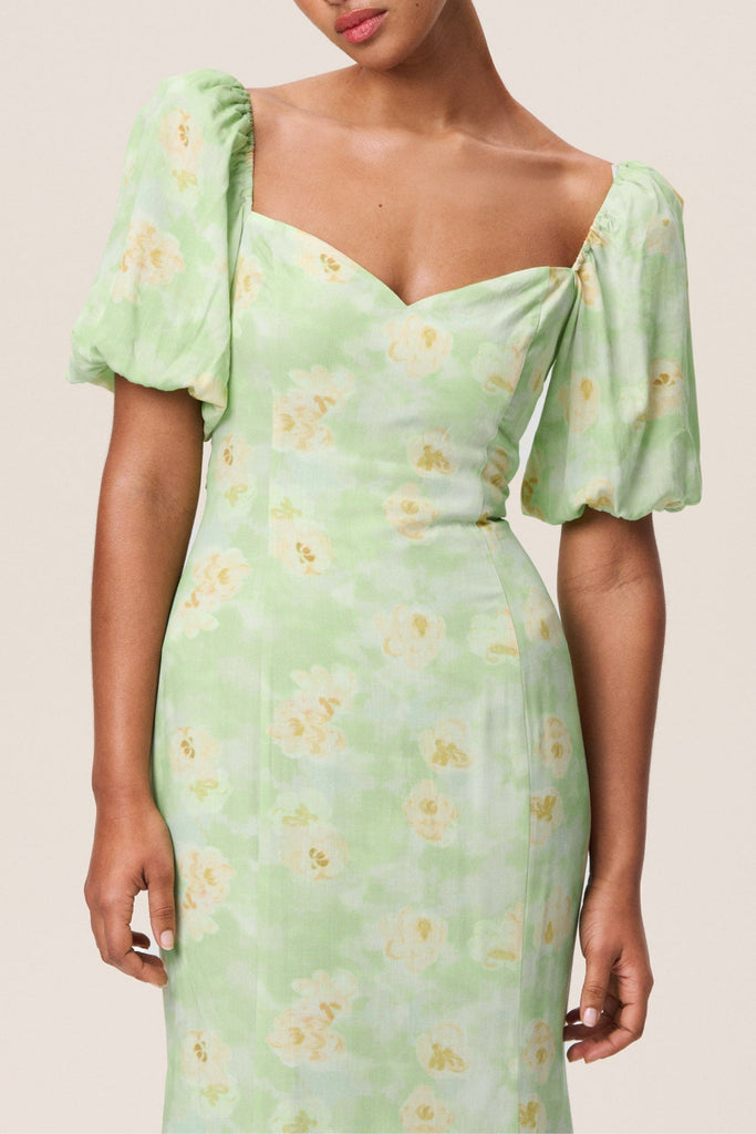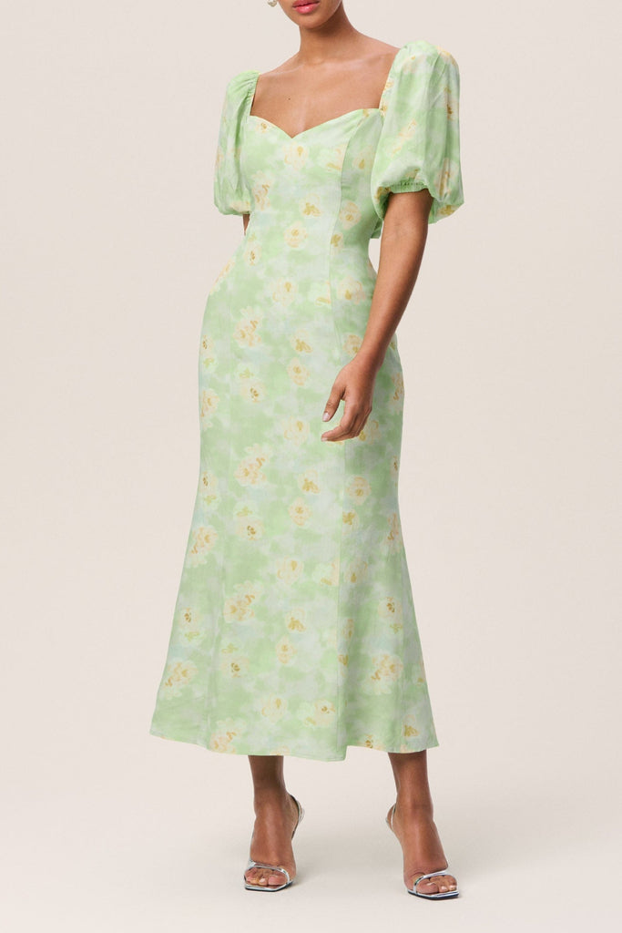 Floral puff sleeve midi dress in green – Bellepolly