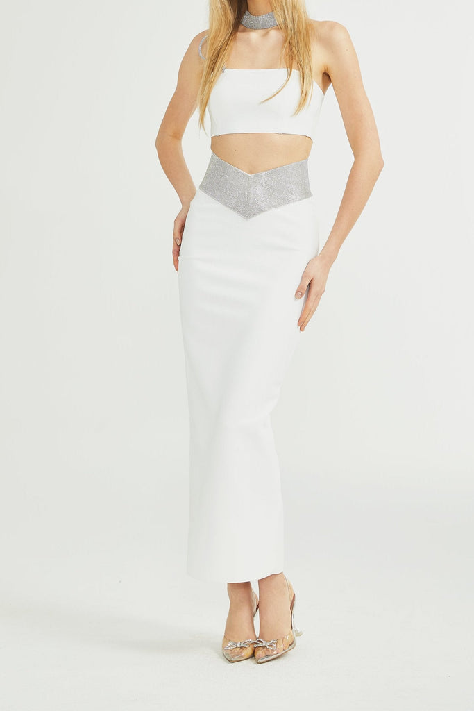 Thérèse crystal-strap top & skirt matching set