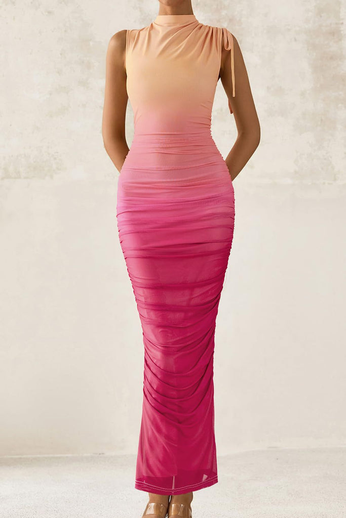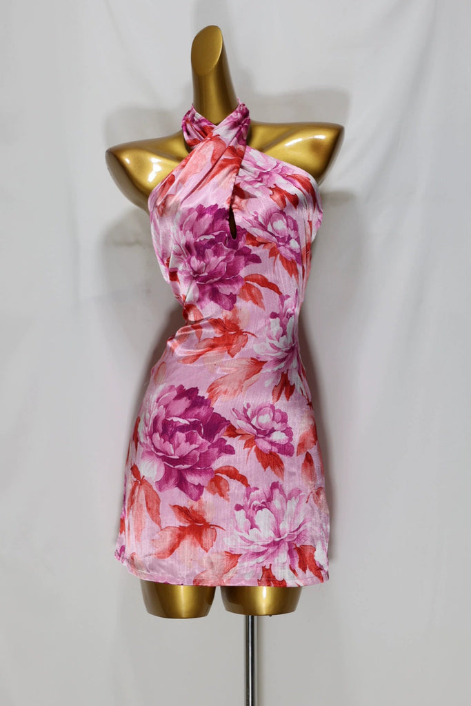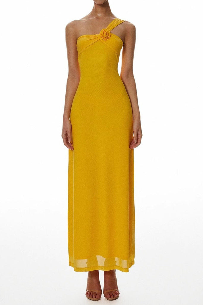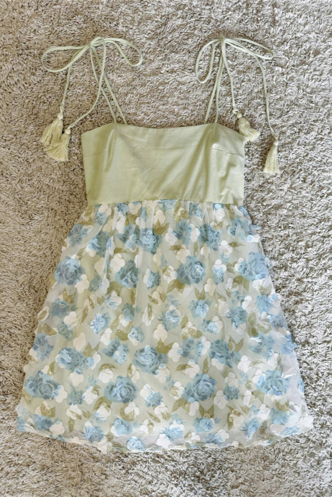 Elegant Plunging Neck Floral Applique Mesh Cami Party Dress
