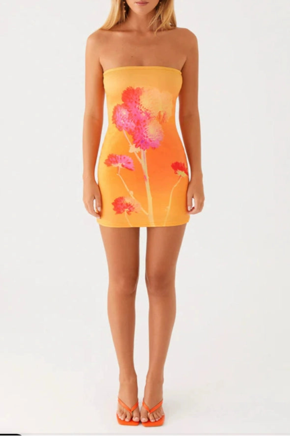 Charming Destiny White 3D Floral Applique Strapless Mini Dress