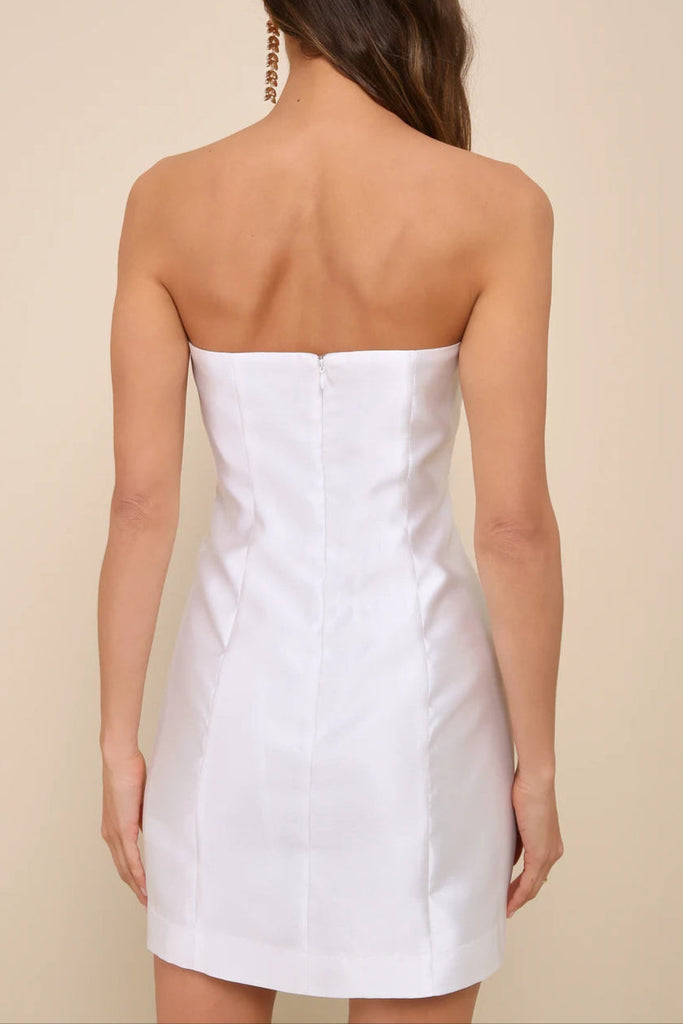 Charming Destiny White 3D Floral Applique Strapless Mini Dress – Bellepolly