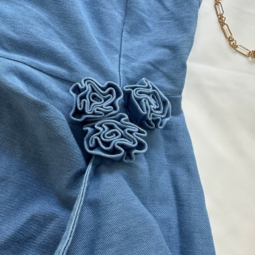 three-dimensional decorative flower slip dress - XXS / Washed color is backordered and will ship as soon as it is back in stock.