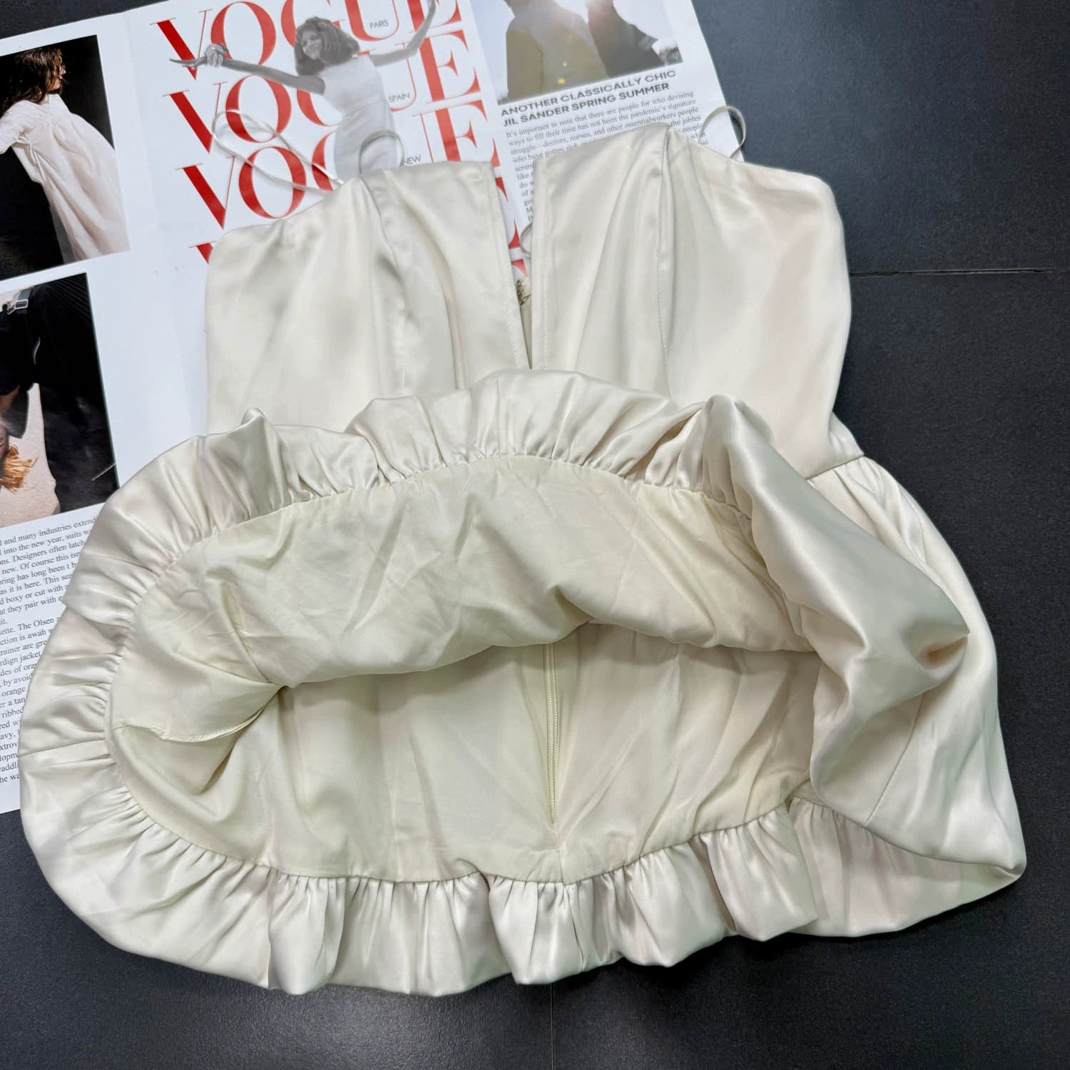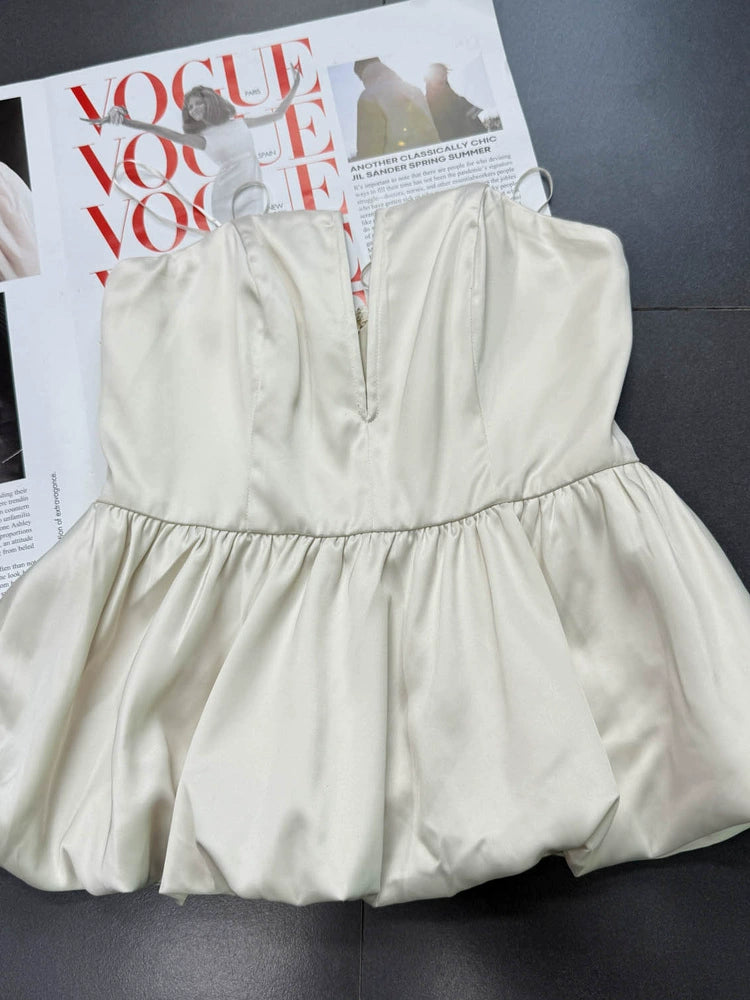 white satin bandeau flower bud small top - XS / white is backordered and will ship as soon as it is back in stock.