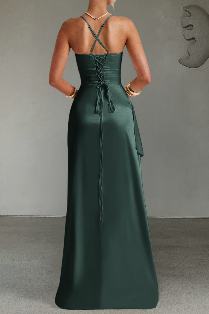 green suspender wrap maxi dress - S / Dark green is backordered and will ship as soon as it is back in stock.