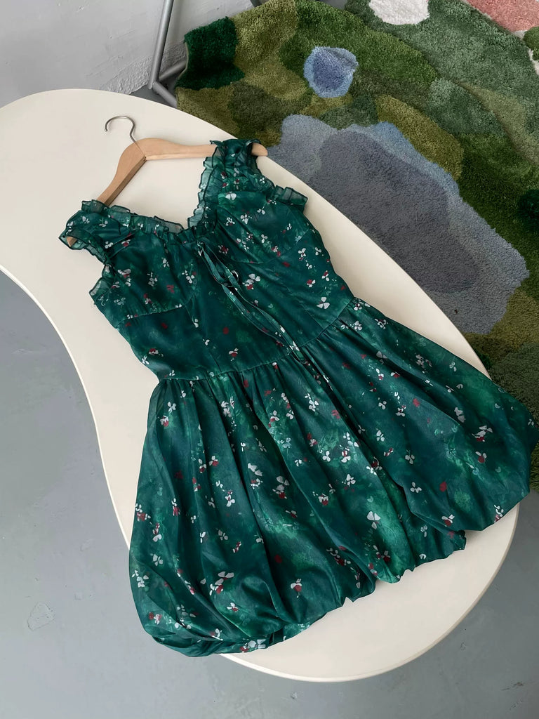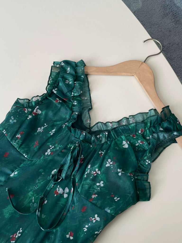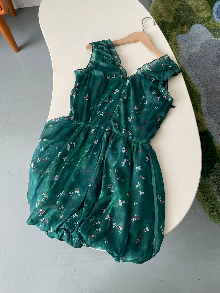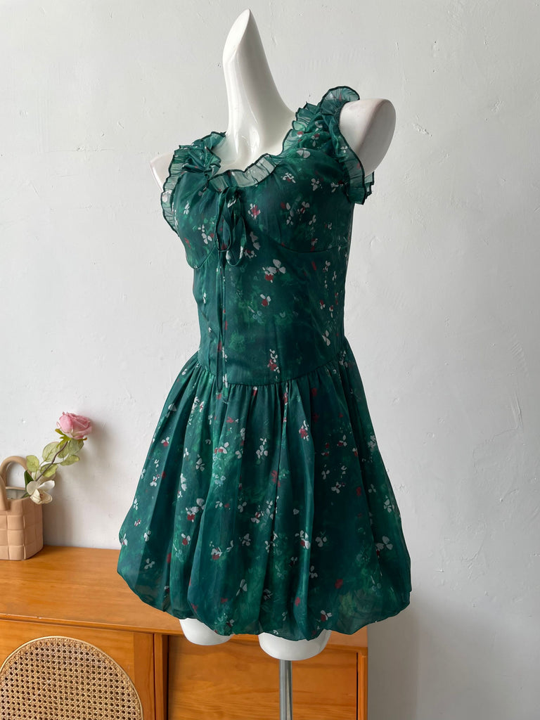 green V-neck floral mini dress - S is backordered and will ship as soon as it is back in stock.