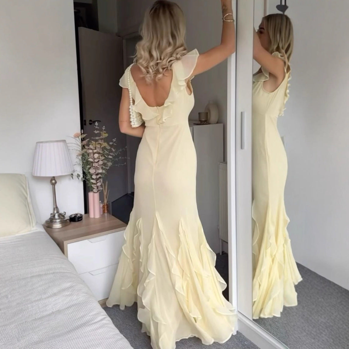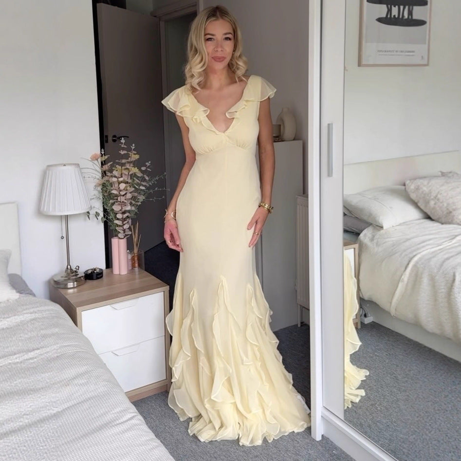 light yellow splicing ruffled maxi dress - S / light yellow is backordered and will ship as soon as it is back in stock.