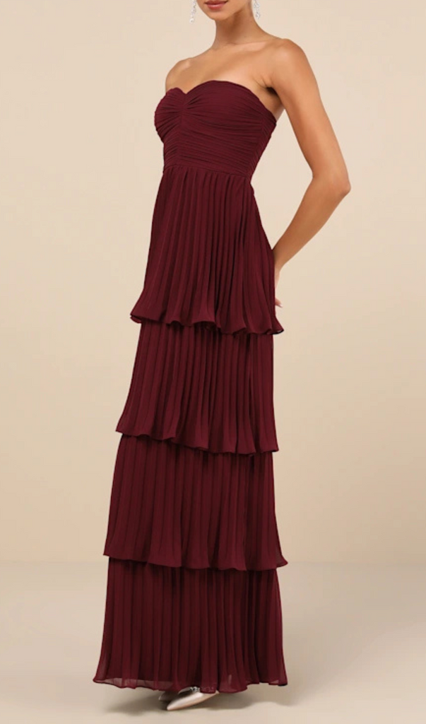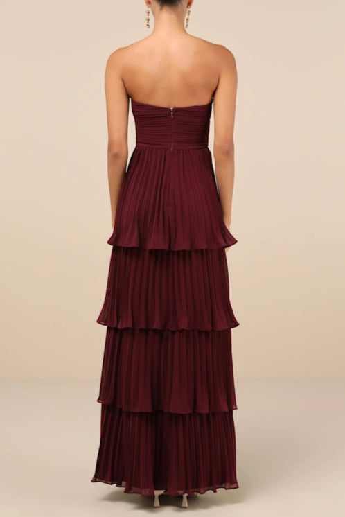 This plum purple strapless tiered maxi dress is a versatile and stylish addition to any wardrobe. Made from high-quality materials, it offers a comfortable and flattering fit for any body type. The strapless design allows for easy accessorizing, while the tiered maxi length provides an elegant and sophisticated look. Perfect for any occasion, this dress is a must-have for any fashion-forward individual.