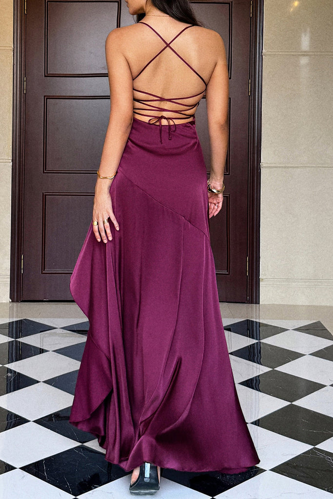 red wine suspender slits maxi dress – Bellepolly