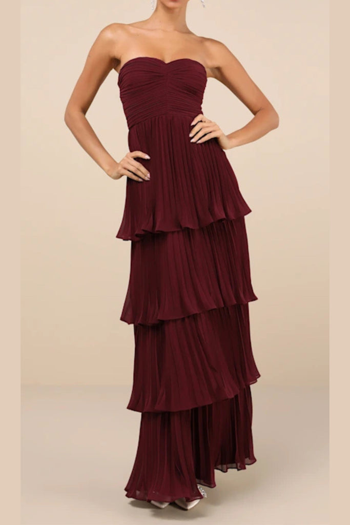After Hours Blush Pink Strapless Ruffled Maxi Dress