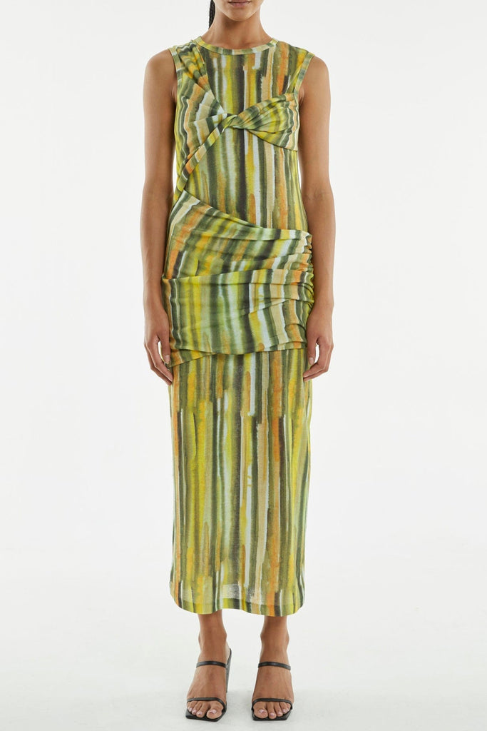 Melisse Sleeveless Stretch-knit Dress In Vert Vegetal