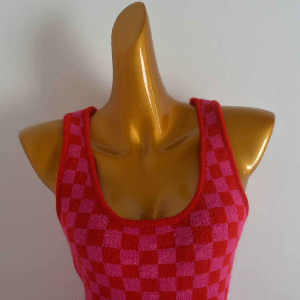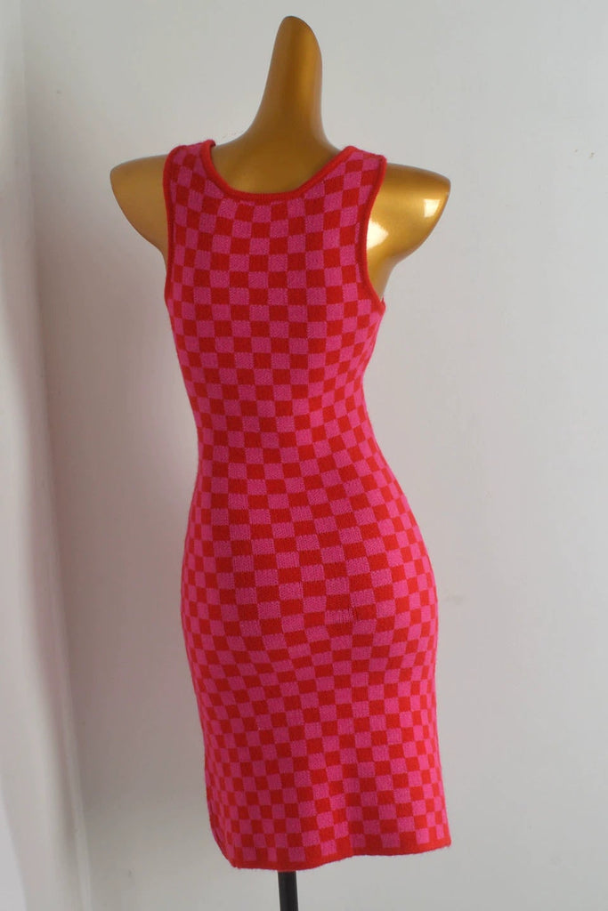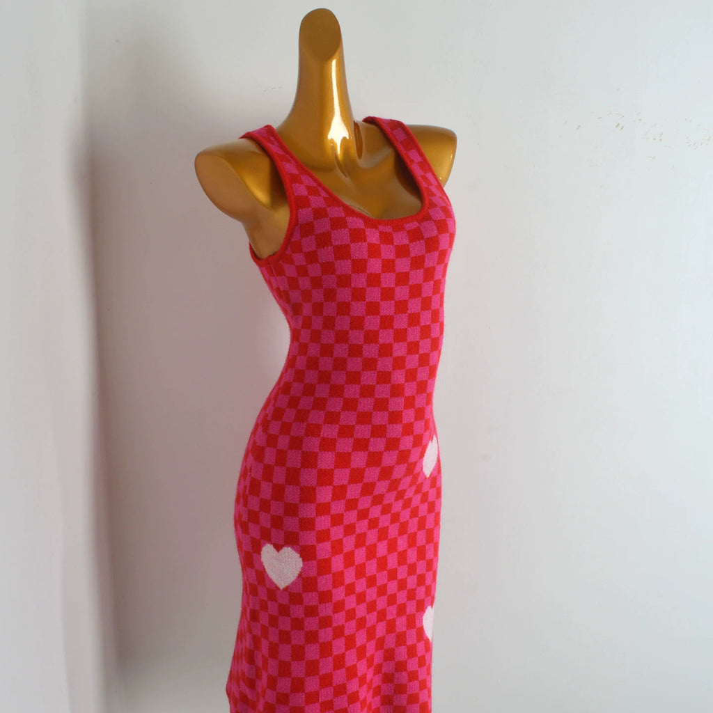 pink suspender checkerboard midi dress - S is backordered and will ship as soon as it is back in stock.