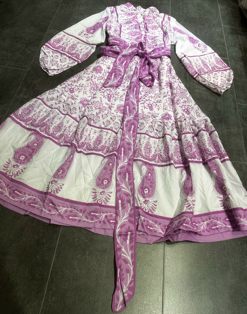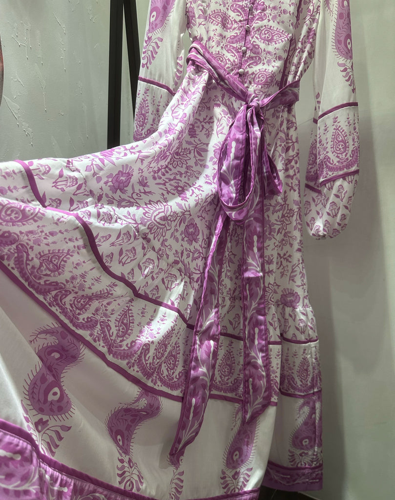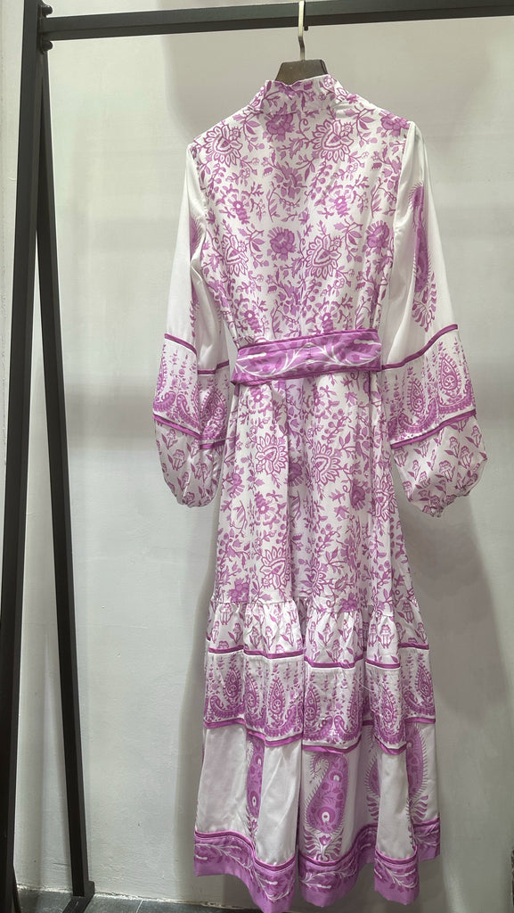 purple floral print midi dress - S / Photo Color is backordered and will ship as soon as it is back in stock.