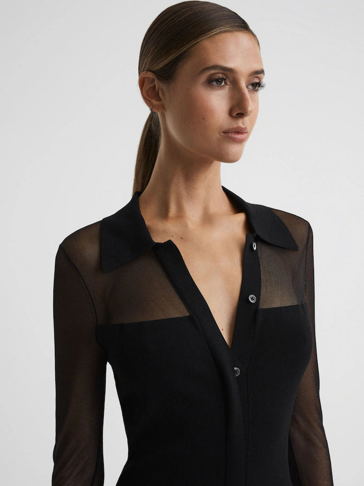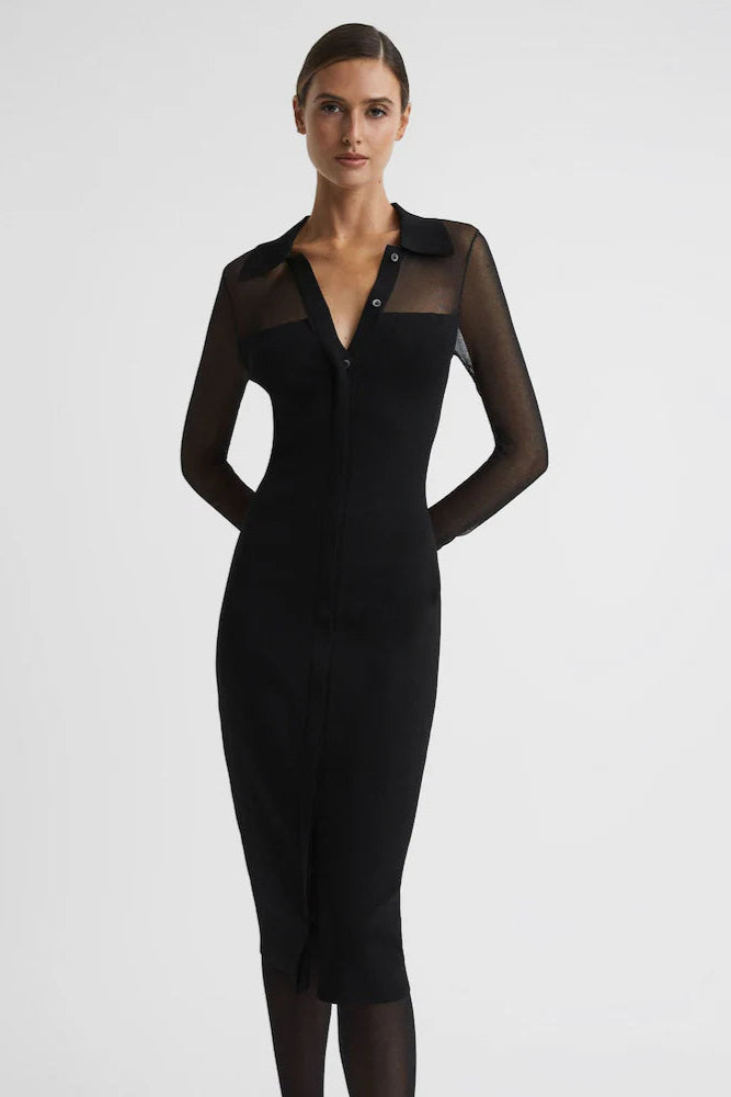 Made from high-quality sheer fabric, this dress offers a touch of elegance and sophistication. With its button-through design and flattering midi length, this dress is both stylish and versatile.