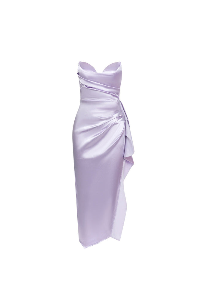 Introducing our elegant Strapless Ruffle Midi Dress in Purple. This stunning dress features a strapless design with delicate ruffles, perfect for any special occasion. The versatile midi length adds a touch of sophistication while the bold purple color adds a pop of color to your wardrobe. Elevate your style with this must-have piece.