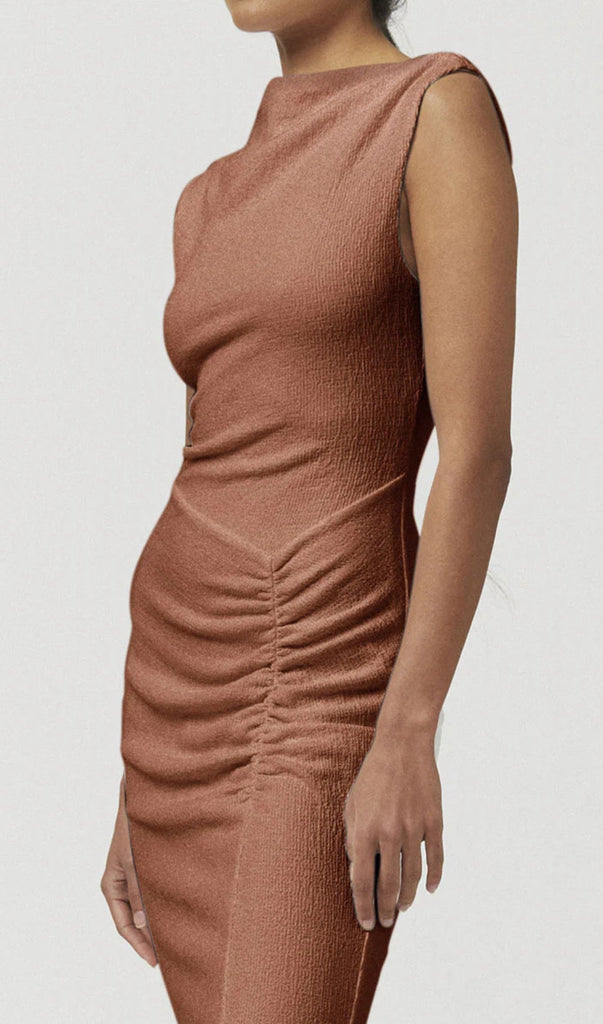 Whether it is lunch by the beach or a classy dinner party. The Vega Ruched Midi Dress in Tan is a timeless silhouette in a classic hue. Pair with a your favourite heels and a small shoulder bag for the ultimate elegant outfit guaranteed.