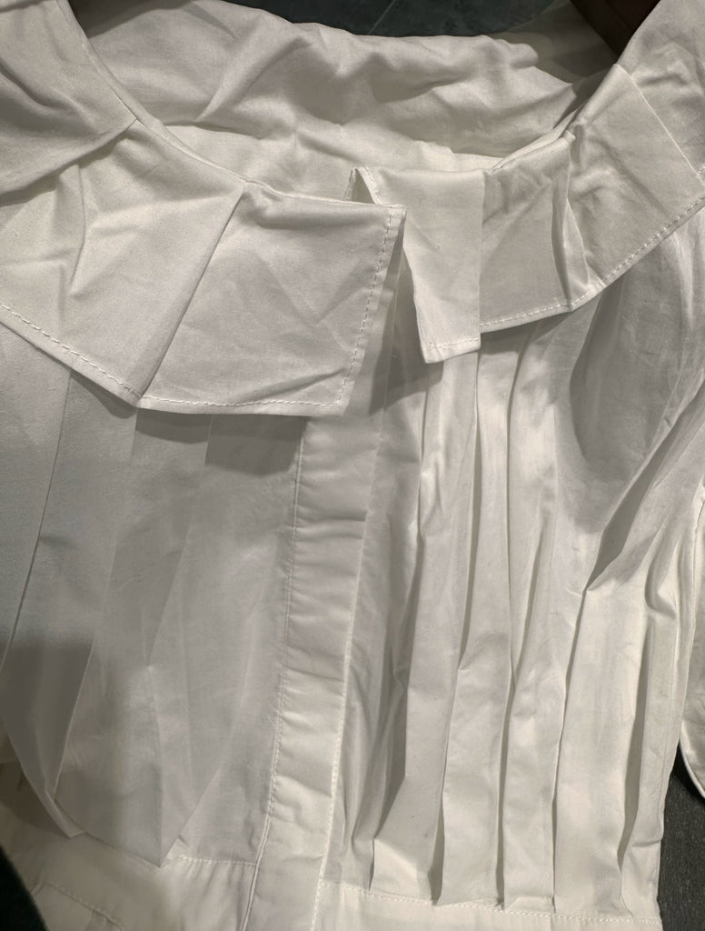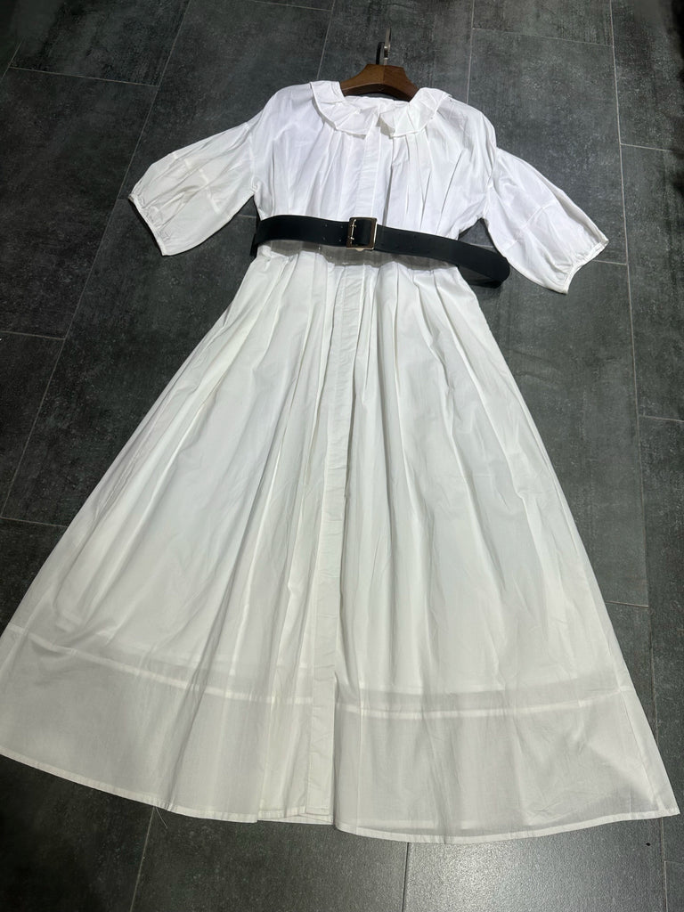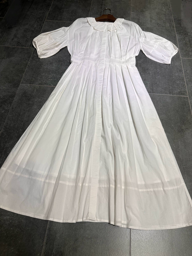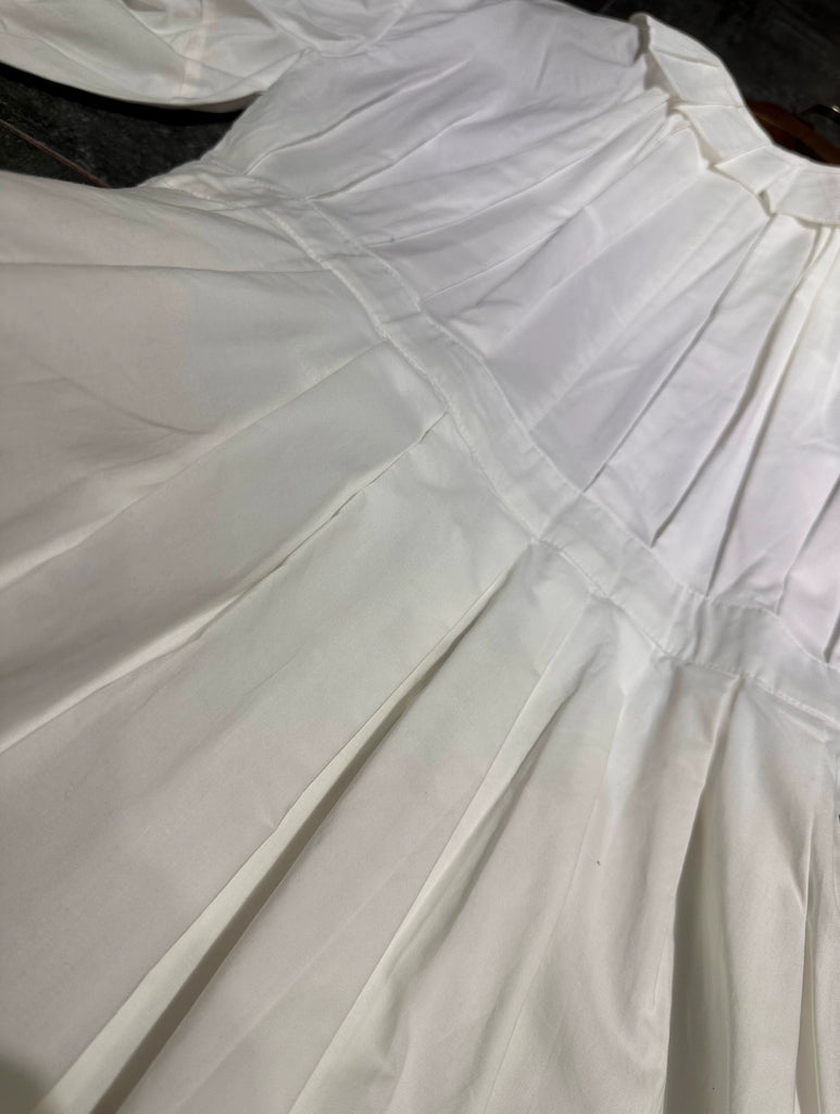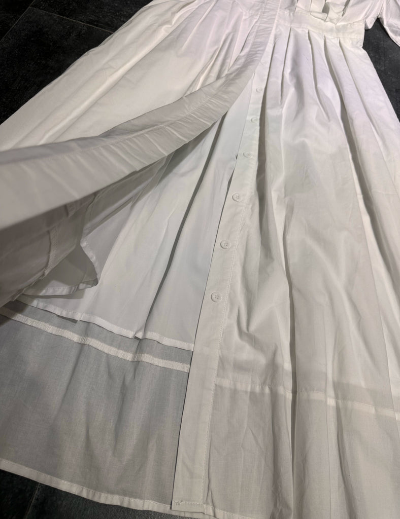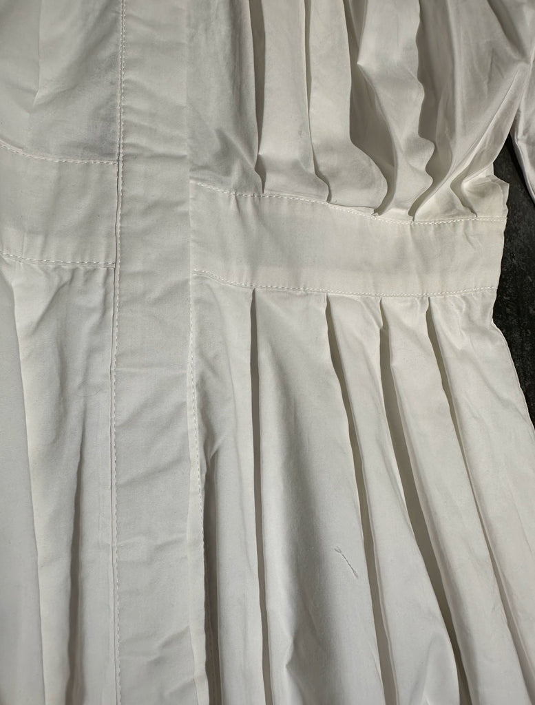 white midi dress with a crew neck and pleated lantern sleeves - S / white is backordered and will ship as soon as it is back in stock.