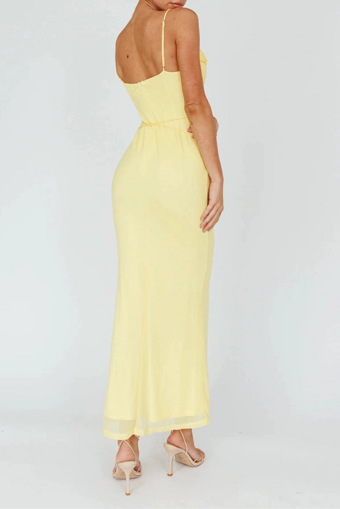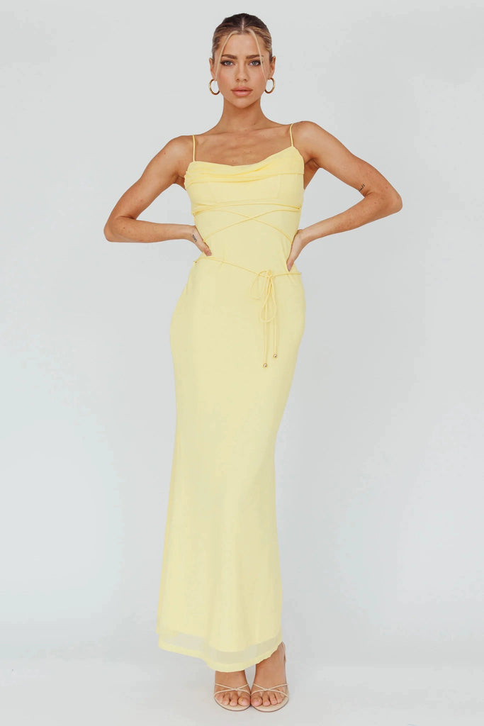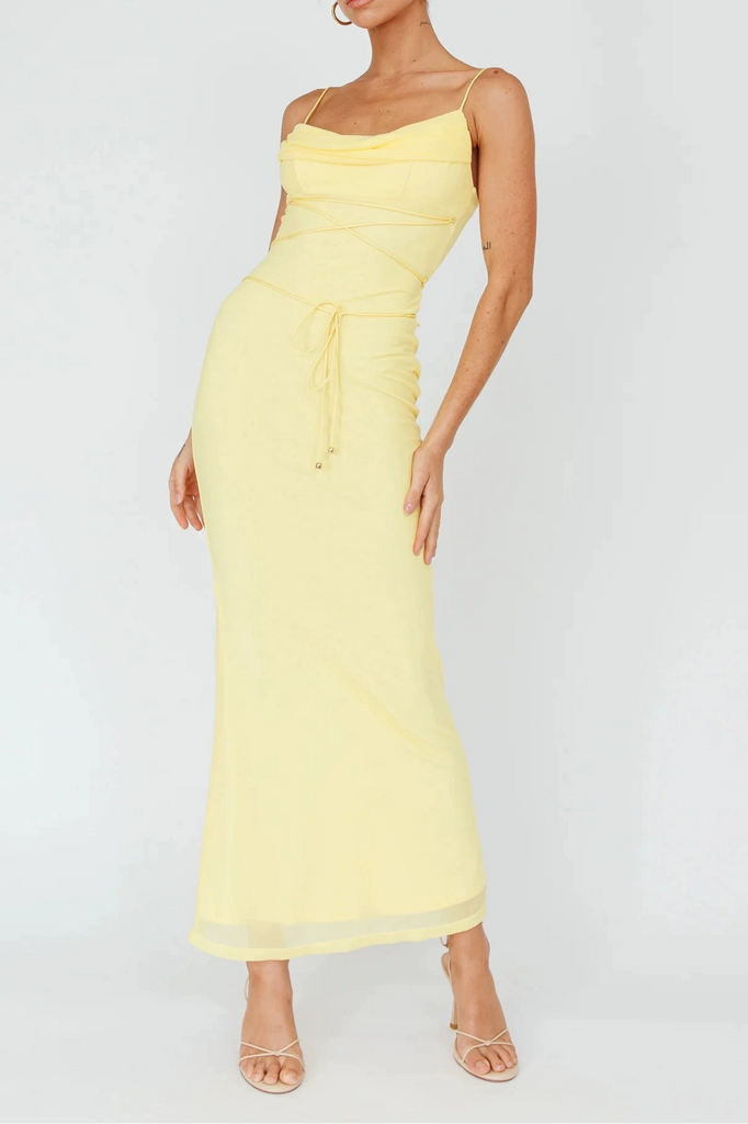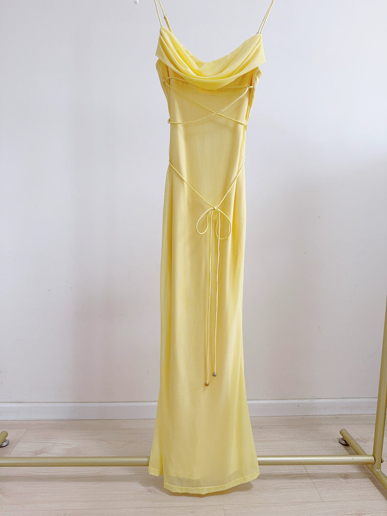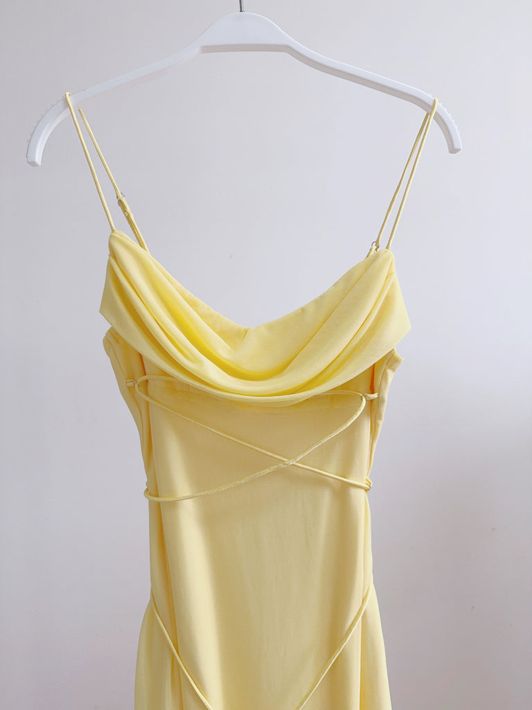 yellow mesh cross-strap suspender midi dress – Bellepolly