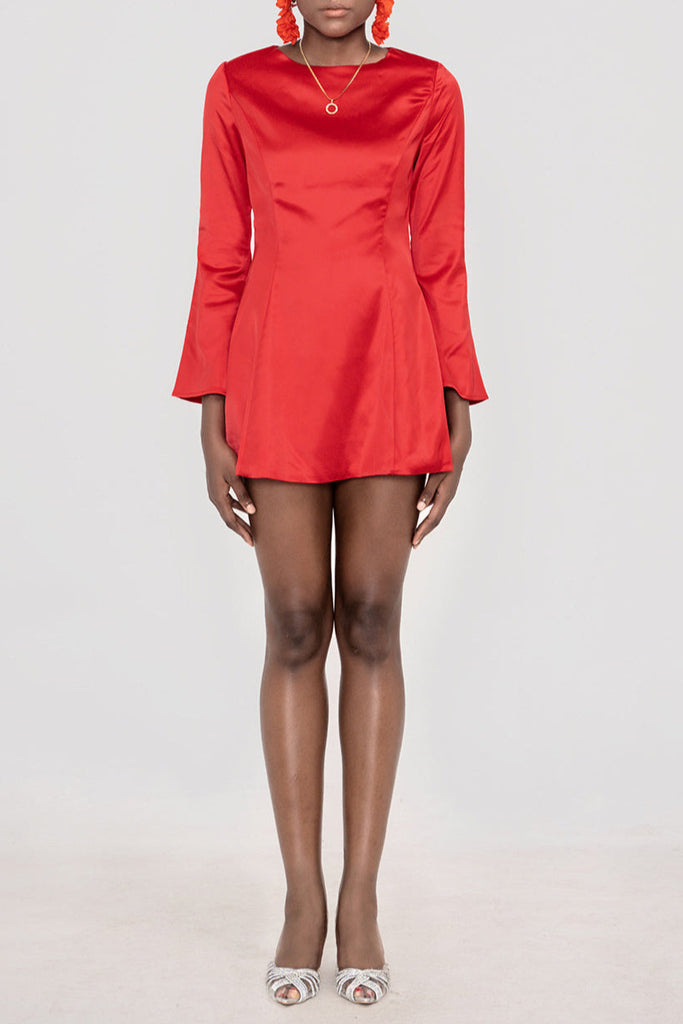 RANDA RED SATIN LONG SLEEVE MINI DRESS