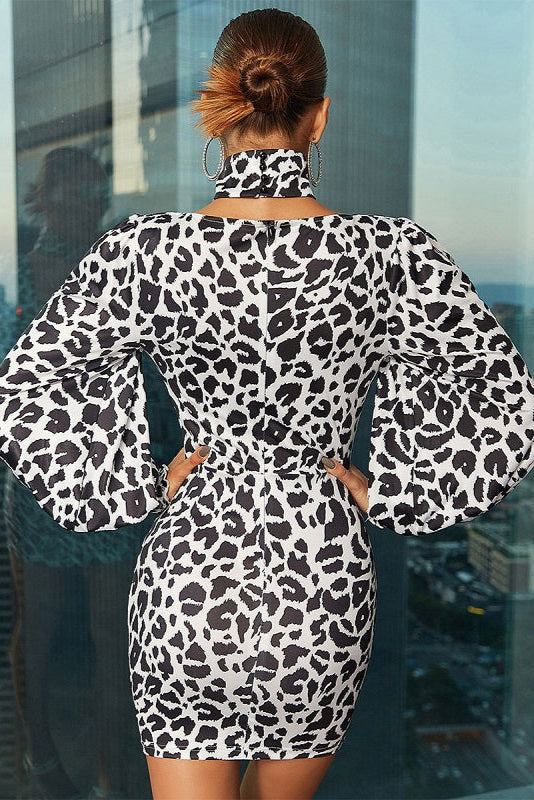 This black semi dress features a jewel neckline and long sleeves, blending elegance with comfort. The front zipper adds a modern touch while allowing easy wear. Its printed design enhances visual interest, making it suitable for both casual and semi-formal occasions. Crafted to balance style and practicality, this dress offers a refined silhouette with effortless appeal.