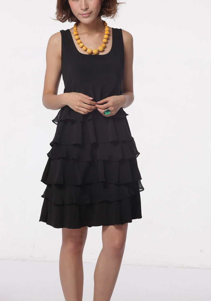 black knitted chiffon sleeveless vest A-line mini dress - XXS / black is backordered and will ship as soon as it is back in stock.