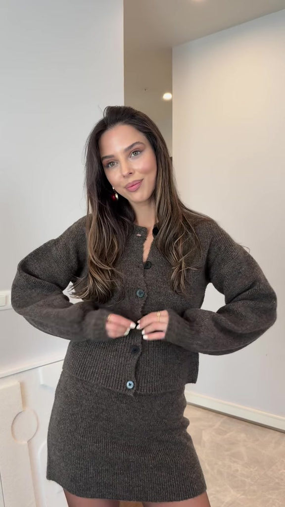 brown long-sleeved short skirt suit - S / dark brown is backordered and will ship as soon as it is back in stock.