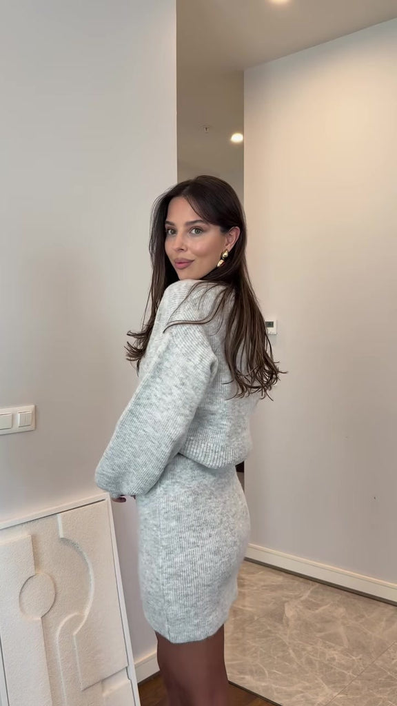 light grey long-sleeved short skirt suit - S / light grey is backordered and will ship as soon as it is back in stock.