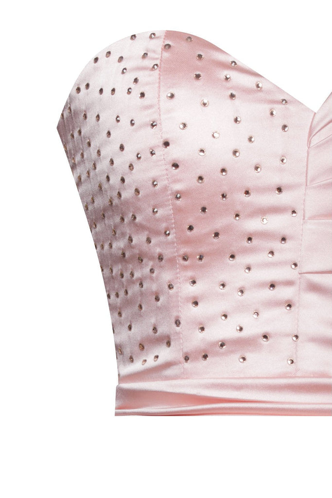 Crafted from smooth satin, this pink strapless bodycon mini dress contours your silhouette for a sleek, flattering fit. Its minimalist design highlights the shoulders and neckline, making it ideal for elegant evenings or special occasions. The fabric’s subtle sheen enhances its sophisticated appeal, while the mini length adds a modern, youthful edge. Perfect for those seeking a balance of classic glamour and contemporary style.
