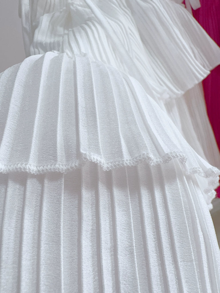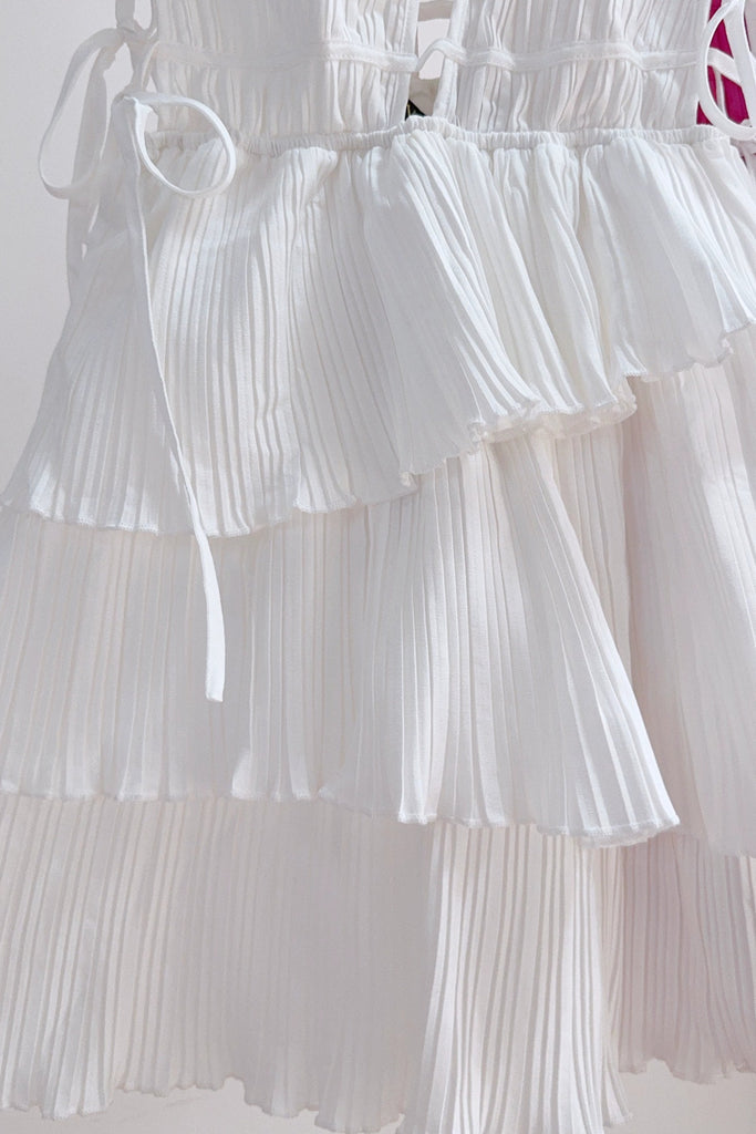 pleated textured V-neck waist sleeveless dress - M / white is backordered and will ship as soon as it is back in stock.